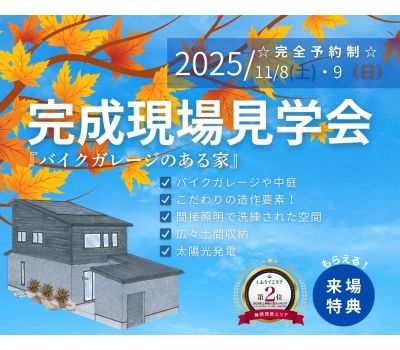 《完全予約制》11月8日 (土)・9日 (日) バイクガレージのある完成現場見学会