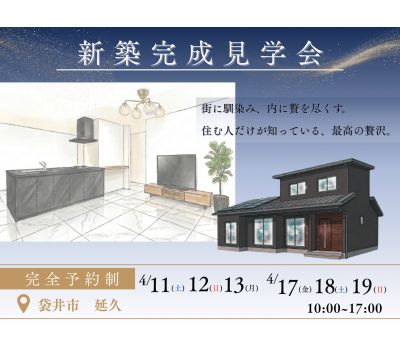 《完全予約制》4/17・4/18・4/19・新築完成見学会 高級感ある広々LDK!
