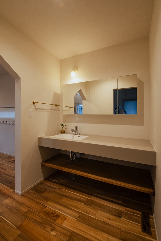 忙しい朝も家族で使える広々造作洗面台