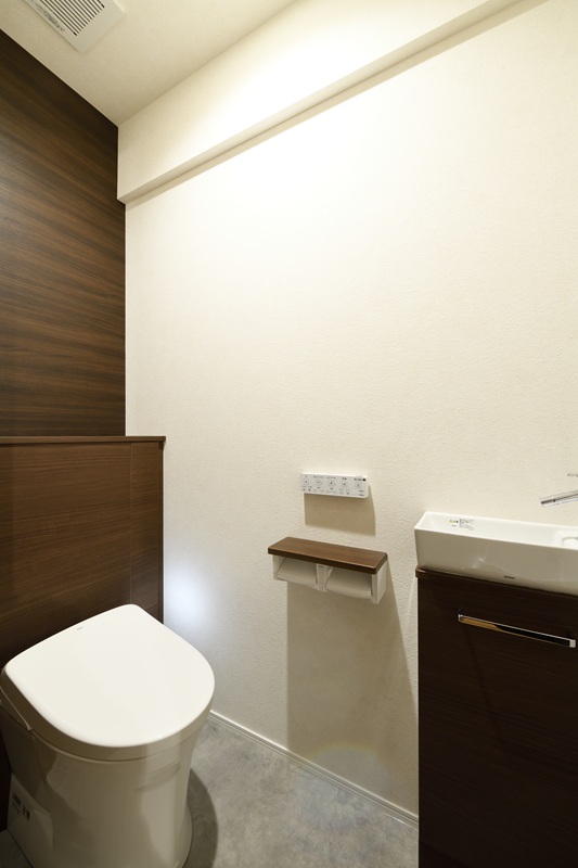 ゆとりのある落ち着いた配色のトイレ